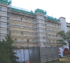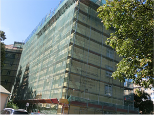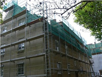 The canvas on top of the scaffold help to protect the environment and to wash the exterior walls.