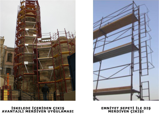 3 m. yükseklikten sonra düşmeyi engelleyen koruma sepeti.