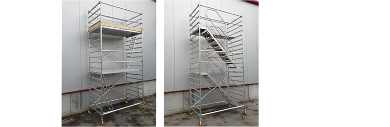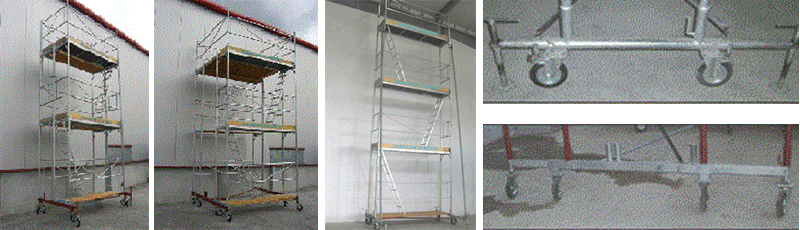 Açık ve kapalı alanlarda kullanıma uygun alüminyum tekerlekli iskeleler.
